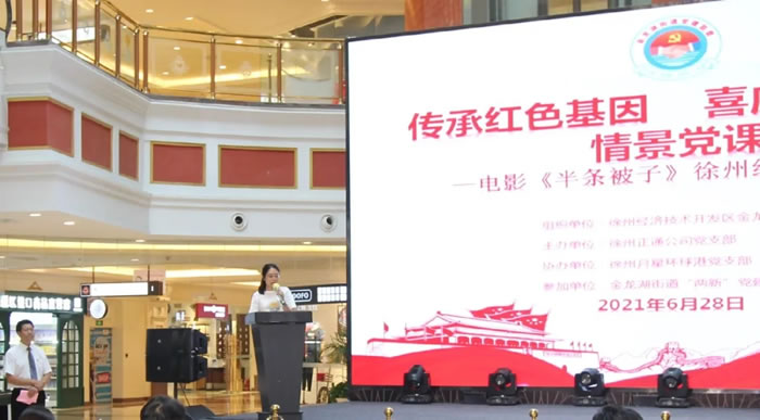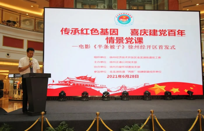 2021年6月28日下午,“傳承紅色基因 喜慶建黨百年”情景黨課活動(dòng)暨《半條被子》徐州經(jīng)開(kāi)區(qū)首發(fā)式在淮海環(huán)球港一樓太陽(yáng)廳隆重舉行,本次活動(dòng)由徐州正通公司黨支部主辦,徐州經(jīng)濟(jì)開(kāi)發(fā)區(qū)金龍湖街道黨工委、徐州月星環(huán)球港黨支部、金龍湖街道“兩新”黨建聯(lián)盟成員單位參辦。本次活動(dòng)由徐州正通公司黨支部書記、董事長(zhǎng)張義先生主持。參加本次活動(dòng)的人員有: