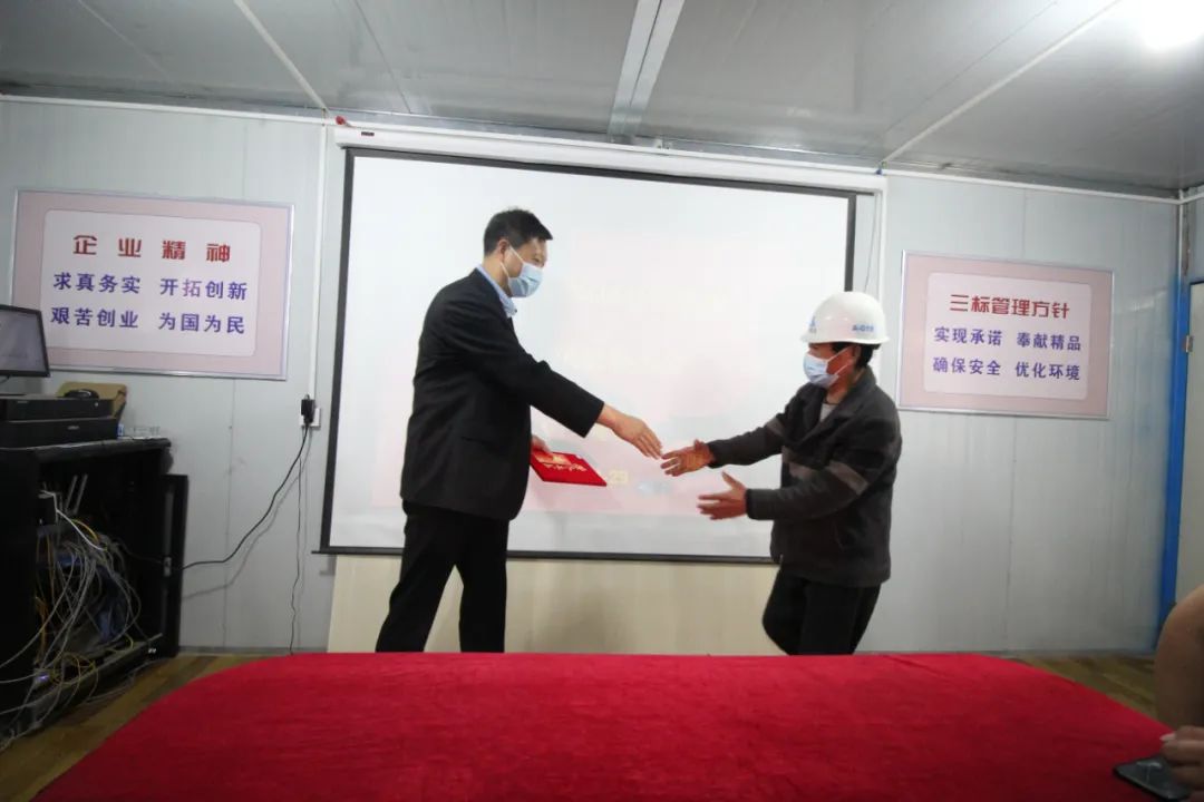 面對疫情,云飛小學(xué)項(xiàng)目全體同仁眾志成城,在奮力抗擊疫情、保持安全形勢平穩(wěn)的同時,不但全面完成本項(xiàng)目部現(xiàn)階段生產(chǎn)任務(wù),還大力協(xié)助了公司援建徐州方艙醫(yī)院項(xiàng)目部的后勤保障工作,被公司表彰為先進(jìn)團(tuán)隊(duì)。表彰大會在熱烈歡快的氣氛中拉開帷幕,公司為優(yōu)秀的先進(jìn)個人頒發(fā)了榮譽(yù)證書和獎金!獲獎員工陸續(xù)上臺領(lǐng)獎,他們個個精神抖擻,臉上洋溢著自信、燦爛的笑容。此次表彰活動通過表先進(jìn),樹典型,進(jìn)一步增強(qiáng)了屬地員工的安全生產(chǎn)意識,有效營造了全員抓安全、事事重安全的工作氛圍,為項(xiàng)目部抗疫情、保安全、促生產(chǎn)創(chuàng)造更耀眼業(yè)績打下堅(jiān)實(shí)基礎(chǔ)。